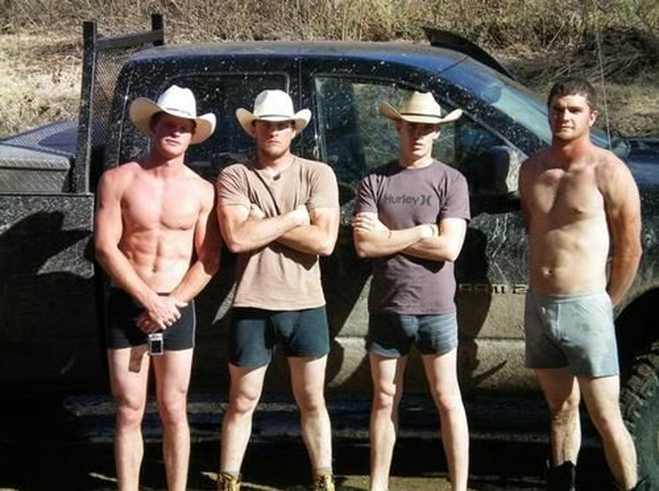 It is a great southern tradition, the Yankee (without the hat) gets bent over the tailgate and is made to squeal like a pig, while the white trash dudes take turns unloading their balls deep into his new boy pussy.