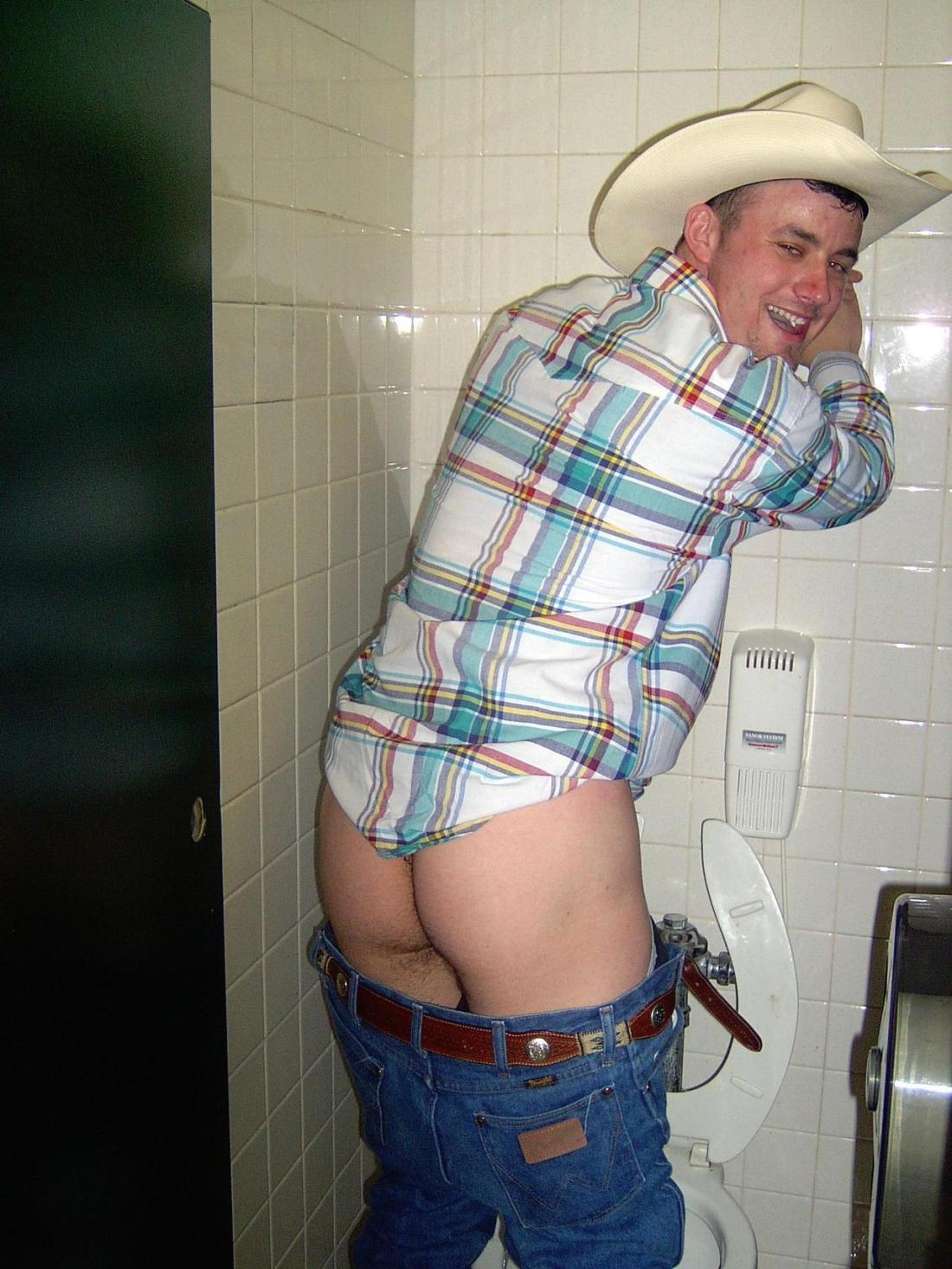 His “buddies” took him out for his 21st birthday and got him drunk. After six beers and several shots, cowboy had to take a piss. He did not notice that his “friends” followed him into the bar’s toilet. As he pulled down his pants to take a leak, he heard the wolf whistle behind him. He laughed when he saw his “friends” pulling out their cocks. Thinking that they wanted to pee as well, he joked that it looked like the stall was too small for all of them, they would have to take turns. They stared at his virgin ass and told him that was exactly what they planed on doing.