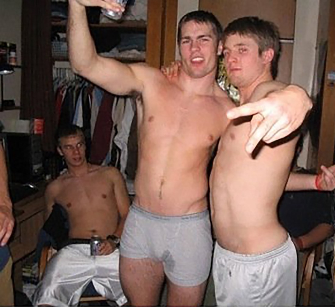 Pete’s friends could not help but notice he was chubbed up from hanging out with them shirtless. The more they touched him, the bigger the precum stain on his boxer briefs got. Then someone suggested a game of truth or dare.