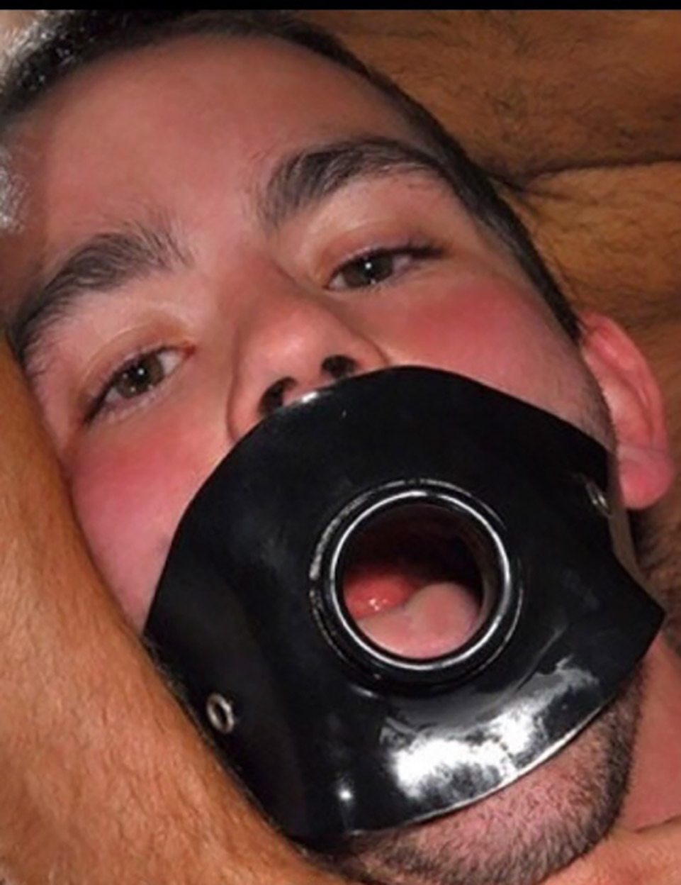 Since this is your first time sucking cock, and you claim to be straight, we have provided you with the mouth guard. It will help you keep your teeth out of the way and allow the men using you total access.