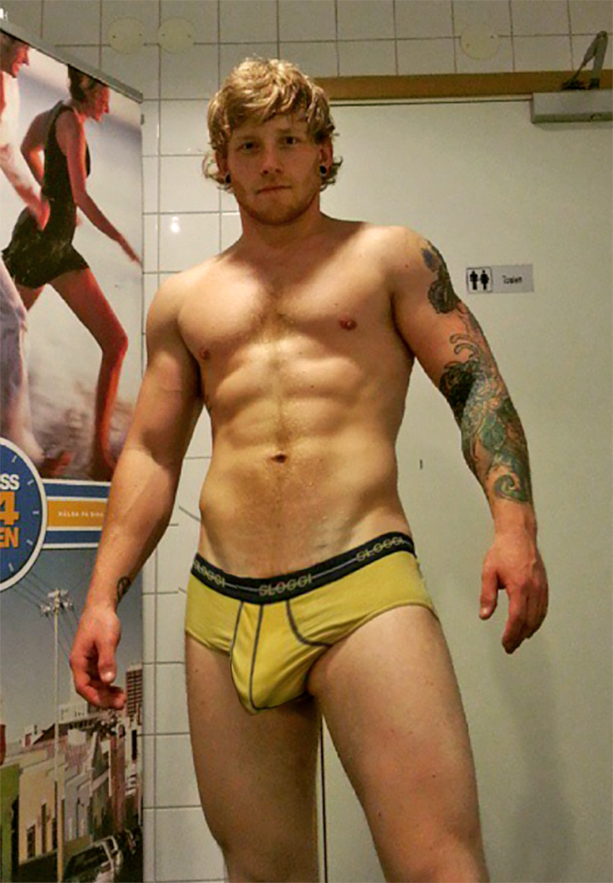 He loves strutting around the gym with a semi boner. He knows the fags can’t help but stare at the way his thick, nine inch cock stretches out the front of his briefs.