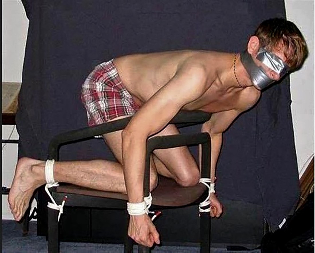 “As promised, one freshman with a virgin hole for you and your friends to enjoy. He has been secured in an easily usable position. Just rip a hole in his boxers and have fun. He’s yours until noon tomorrow.”