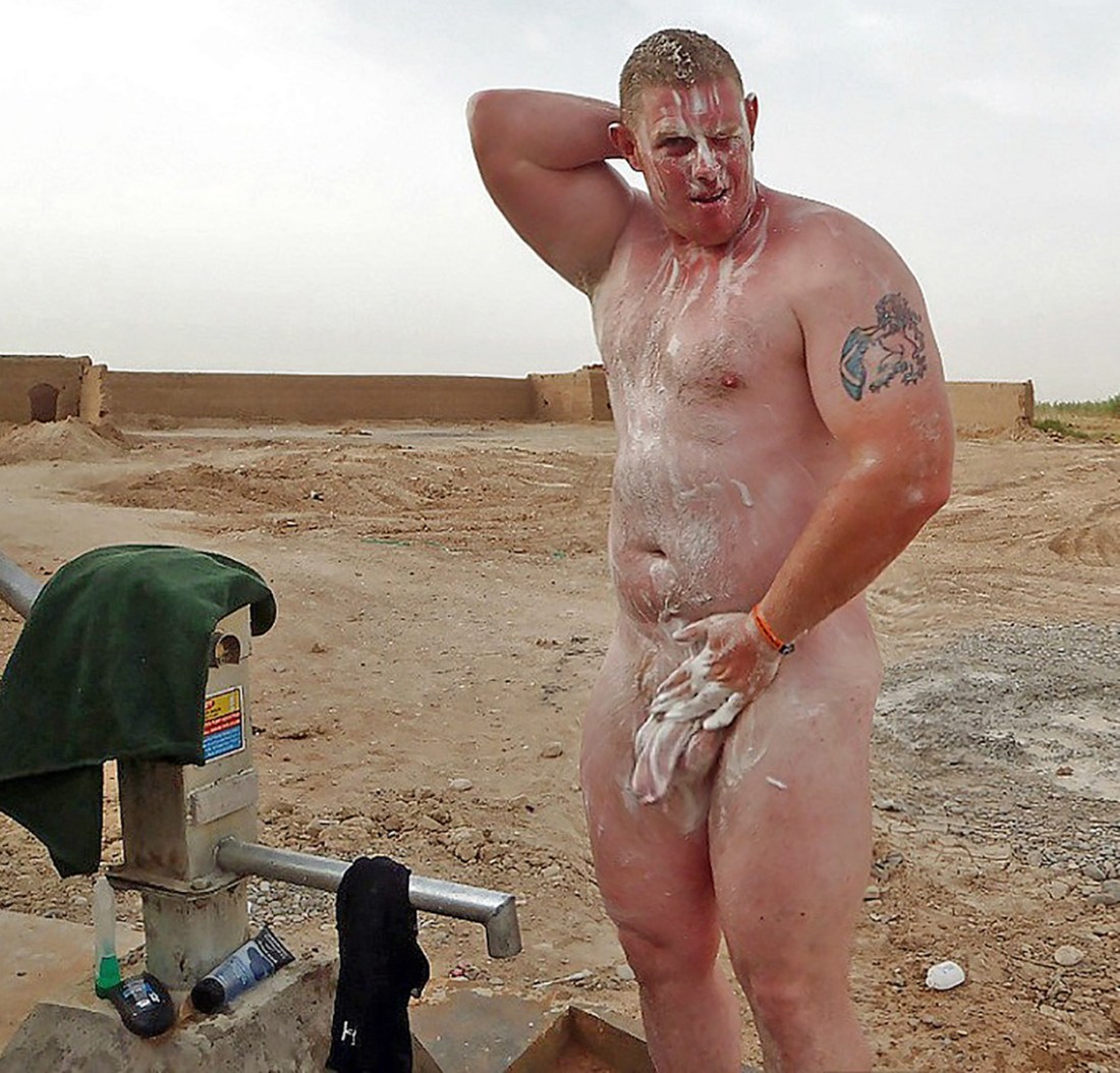 We are alone out here, no one will know. It’s obvious that you are interested from the way you are staring. C’mon, help me out. I got a big fat cock here that needs some attention. It’s all slick and soapy, just bend over and let me use your ass to jerk myself off. We have been deployed out here for months, I am so horny it hurts and my balls have a nice big load saved up for you.