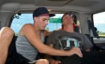 Joe then reclined his seat until he was almost fully horizontal. His rigid cock was sticking straight up in the air. He told Pete to climb on. As Pete was moving into position he looked out the car windows and noted that they had an audience. Two trucks (one on either side) were keeping pace and watching Pete get used. As Pete lowered himself on Joe’s cock the truckers blew their horns in approval.